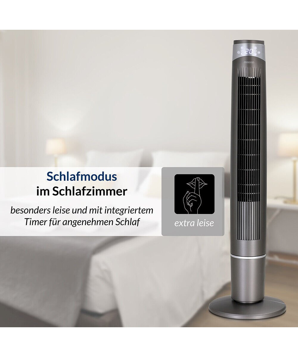 Dank dem besonders leisen Schlafmodus können Sie das Gerät ganz einfach über Nacht verwenden. Der natürliche Wind-Modus simuliert eine frische Brise und sorgt so für eine besonders angenehme Abkühlung. Entscheiden Sie selbst, ob Sie einen leisen Modus oder einen mit besonders großer Kraft wählen, um Ihren Raum schneller abzukühlen.