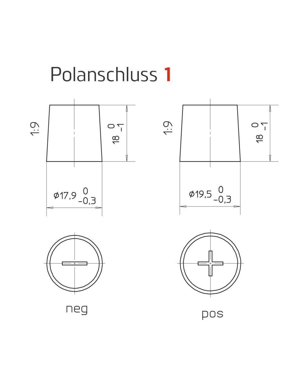 | Durchmesser der Pole | Plus = 19,5mm / Minus = 17,9mm |