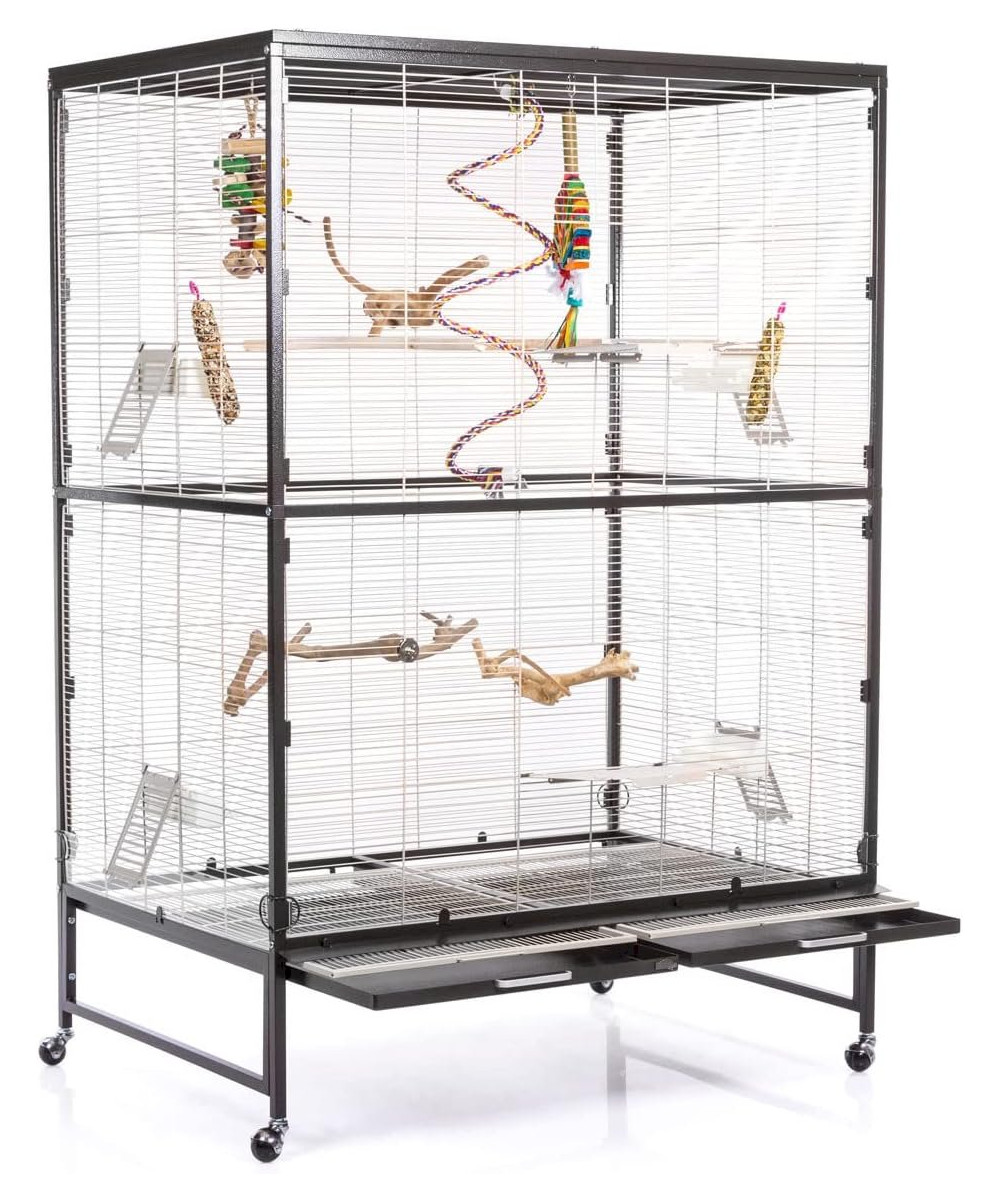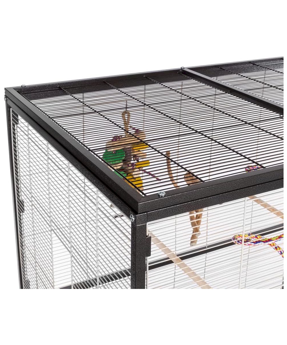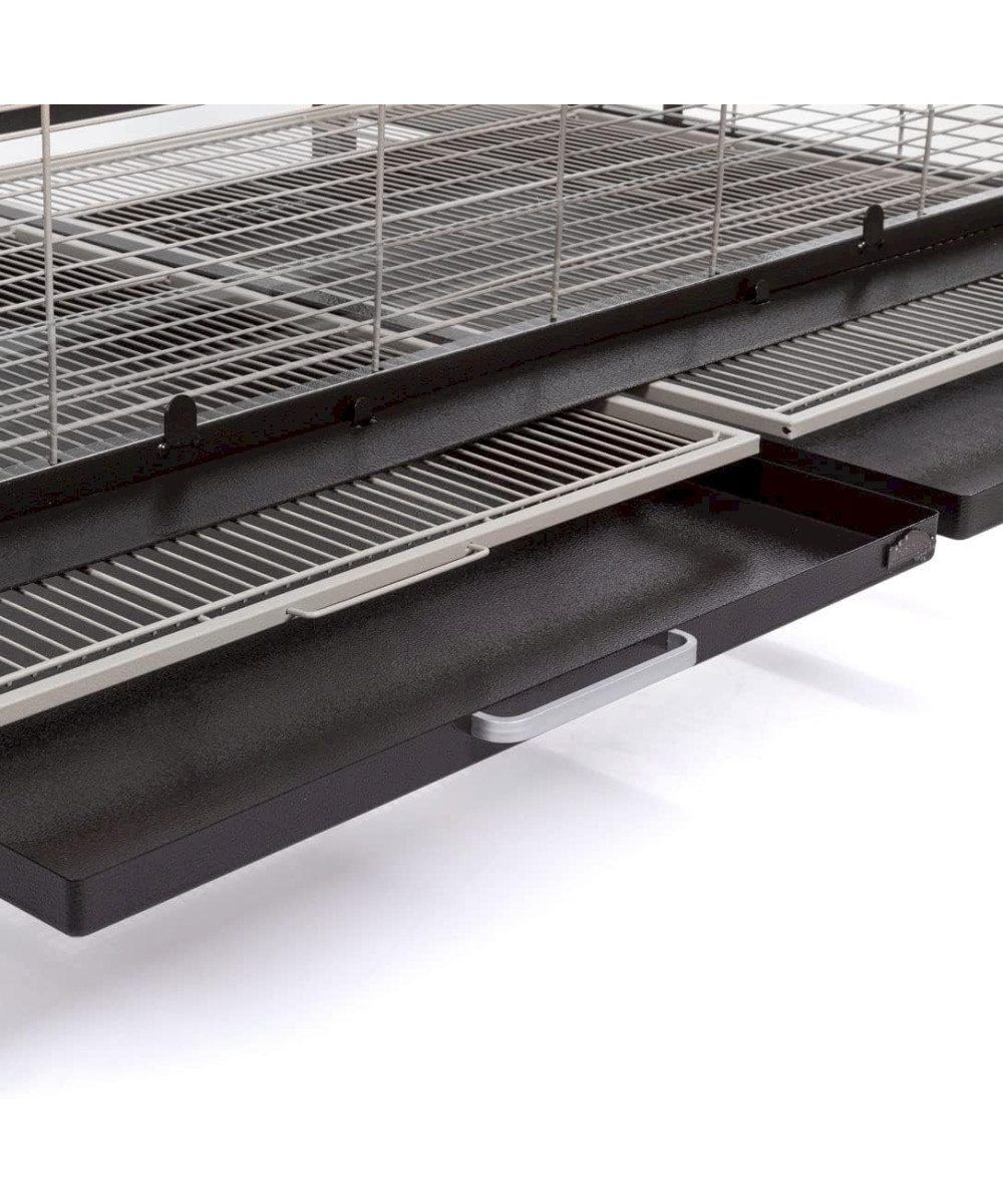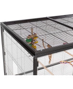 Der Große aus der Volieren-Linie mit viel Platz für kleine Lieblinge zum Toben, Klettern und Spielen. Neben zwei Sitzstangen wird dieses Modell mit vier Futter- bzw. Wassernäpfen geliefert. Das besondere Highlight dieser Modell-Reihe ist das abnehmbare Dach. Durch das in der Konstruktion verarbeitete Gitter-Flachdach kann man die Villa Casa Modelle auch ohne Spitzdach verwenden. Durch die stabilen Rollenfüße kann man diese Voliere bequem auch einmal auf die Terrasse oder den Balkon schieben.