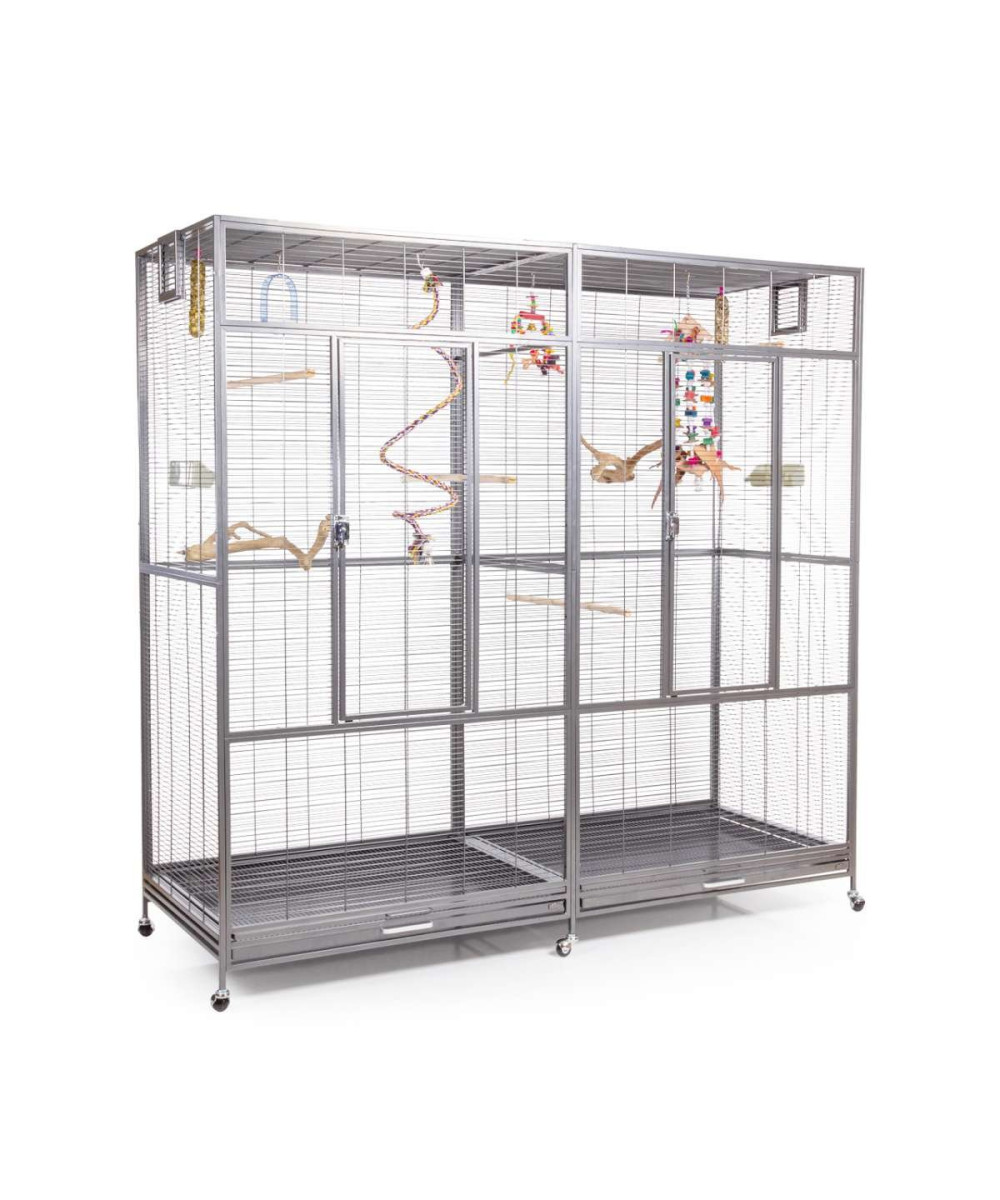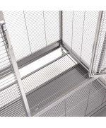 Ein wahrlich großer Käfig mit großzügiger Höhe und reichlich Platz für Vögel. Besonders die große Fronttür bietet einfache Handhabe im Käfig und mit den Rollfüßen, lässt sich dieser Käfig flexibel positionieren.