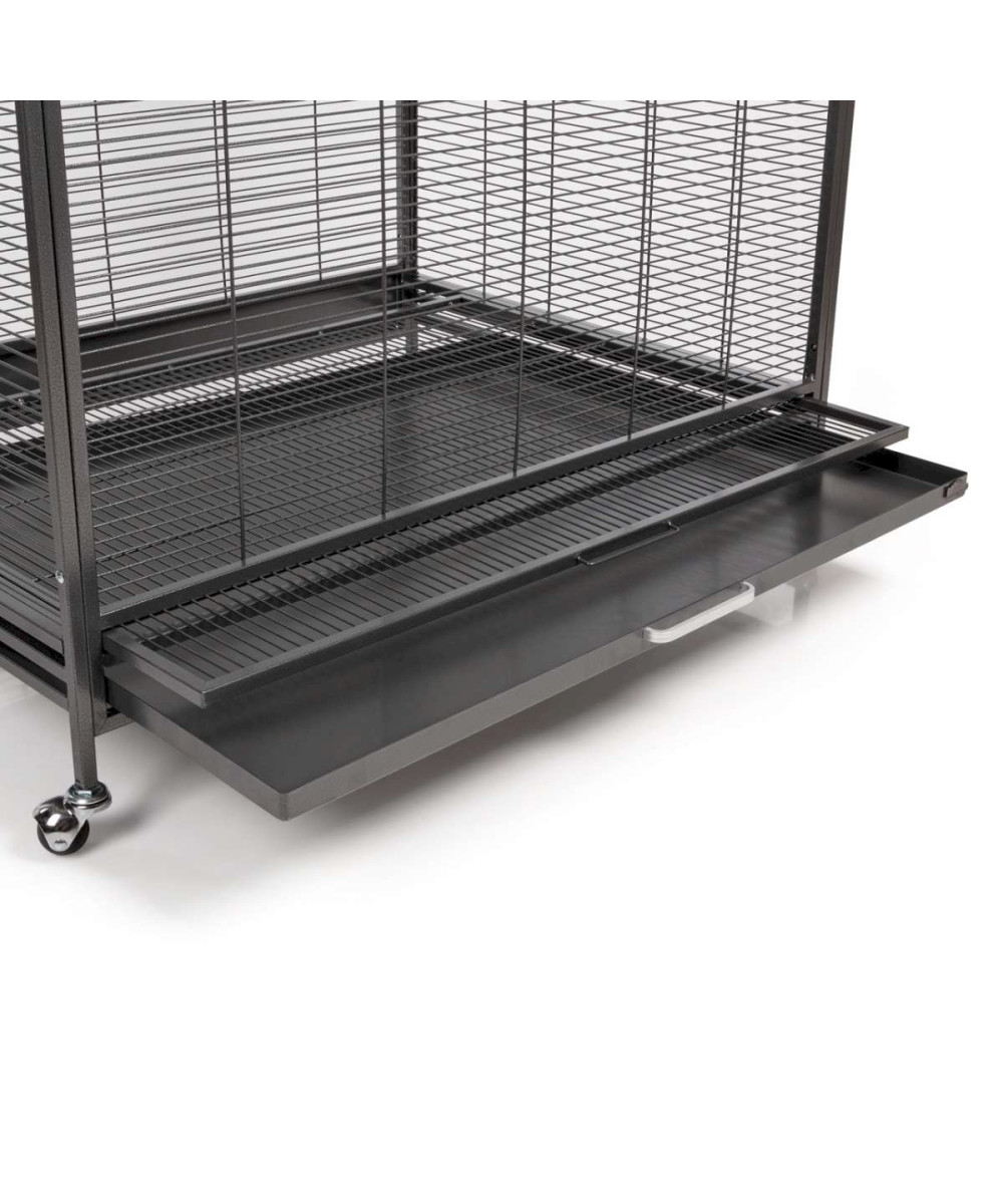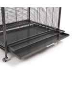 Dank der herausziehbaren Kotschublade und der stabilen Rollfüße ist die Reinigung des Sydney Käfigs ein Kinderspiel. Der Käfig wird mit zwei Plastiknäpfen für Futter und Wasser sowie einigen Sitzstangen für die Ersteinrichtung geliefert. Die großzügige Tür ermöglicht einen einfachen Zugang zu allen Bereichen des Käfigs. Zudem verfügt der Sydney über eine „breeder door“ zur Anbringung eines Brutkastens oder Badehauses.
