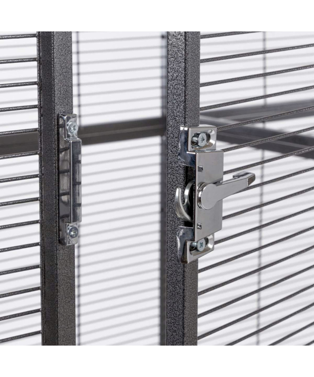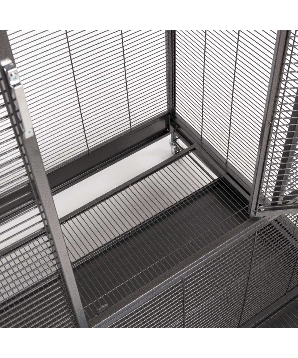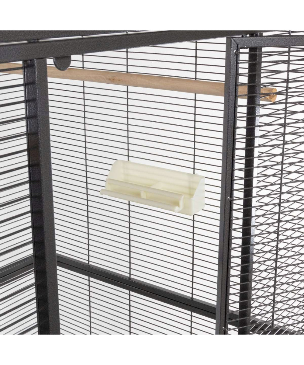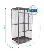 Ein großer Käfig mit großzügiger Höhe und reichlich Platz für Vögel. Besonders die große Fronttür bietet einfache Handhabe im Käfig und mit den Rollfüßen, lässt sich dieser Käfig flexibel positionieren.