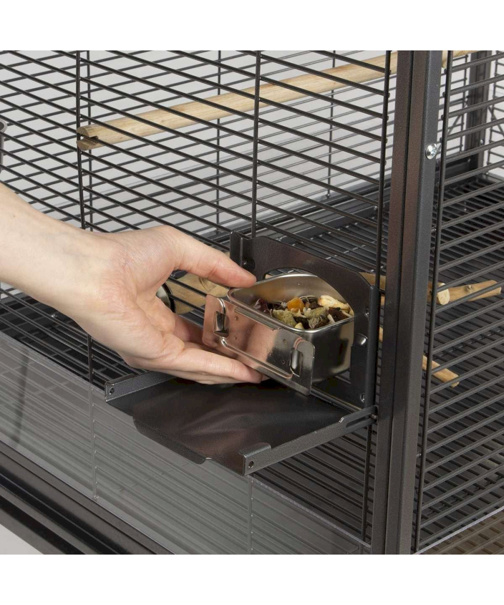 Auch Vögel mögen ein schickes Zuhause haben. Mit der Vogelvoliere Madeira III Antik erhalten Sie einen besonders edlen Vogelkäfig, der Ihren gefiederten Lieblingen zudem noch besonders viel Platz bietet. Er besteht aus schwermetallfreiem Stahl, überzogen mit einer Avilon Pulverbeschichtung, welche speziell für die Vogel- & Nagerhaltung ausgelegt ist. Die Vogelvoliere Madeira III Antik überzeugt vor allem durch ihre filigrane, waagrechte Verdrahtung. Die Innenhöhe des Käfigs beträgt 101 cm, der Gitterabstand 10 mm und die Gitterstärke 2 mm. Die Vogelvoliere Madeira III Antik eignet sich optimal als Grund- bzw. Erstausstattung, da Sie viele nützliche Extras dazu erhalten. Abgerundet wird die Komplettausstattung mit vier Außentüren und einer Zusatztür, welche zur Anbringung eines Nistkastens oder Badehauses geeignet sind. Die Vogelvoliere Madeira III Antik verfügt zudem über eine kleine Anflugklappe, welche die perfekte Ausstattung komplett macht. Aber auch die Reinigung der Vogelvoliere Madeira III Antik sollte man ansprechen, da diese mehr als kinderleicht fällt. Dank eines Kotgitters sowie Schublade können Sie den Käfig schnell und einfach säubern und Ihren gefiederten Lieblingen ein prächtiges Zuhause bieten. Für eine leichtere Positionierung der Vogelvoliere Madeira III Antik verfügt der Käfig über vier Rollen, sodass Sie diesen einfach von A nach B rollen können. Einfach und schöner geht es einfach nicht.