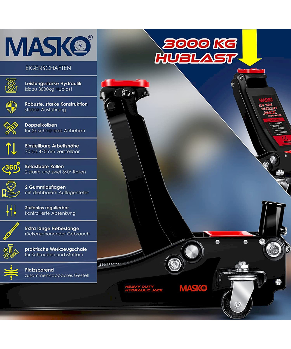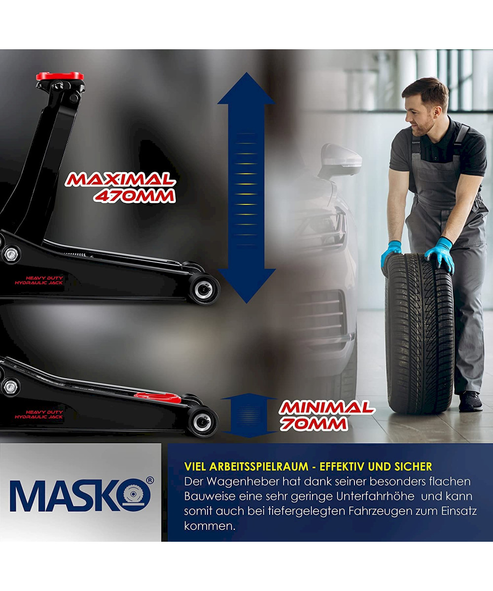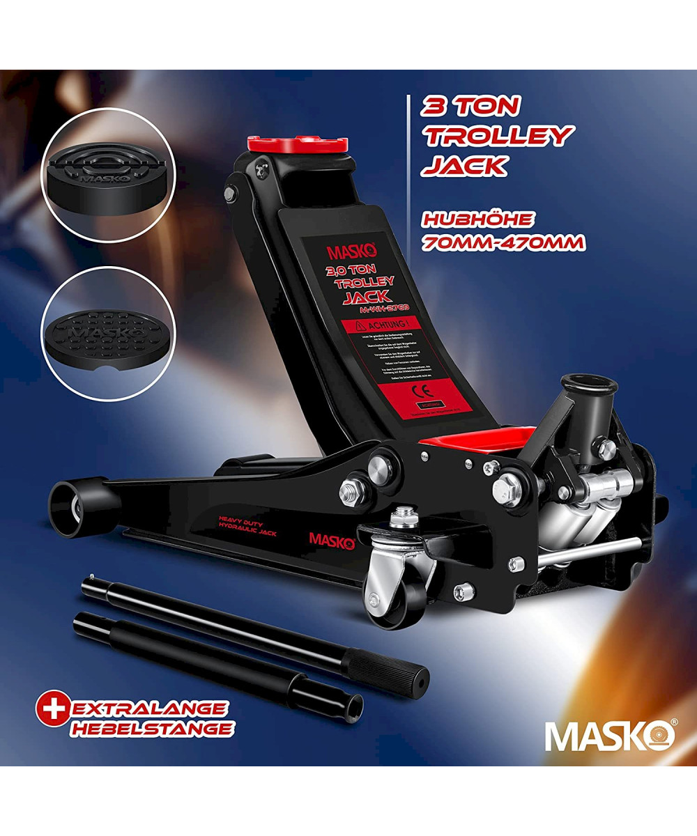 MASKO Wagenheber hydraulisch Flache 3T Schwarz inkl. Koffer KFZ Rangierwagenheber