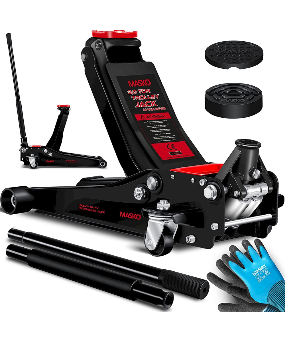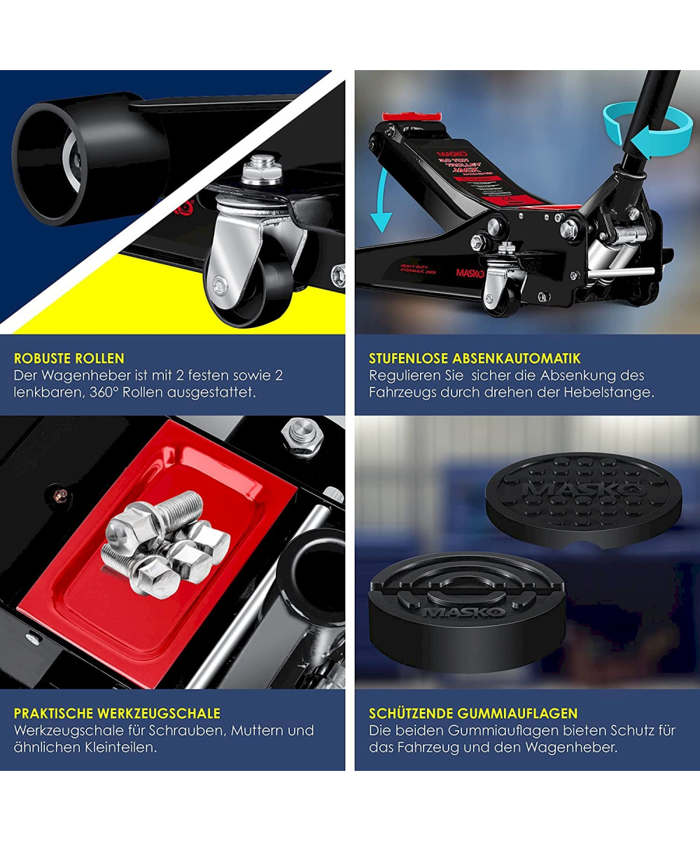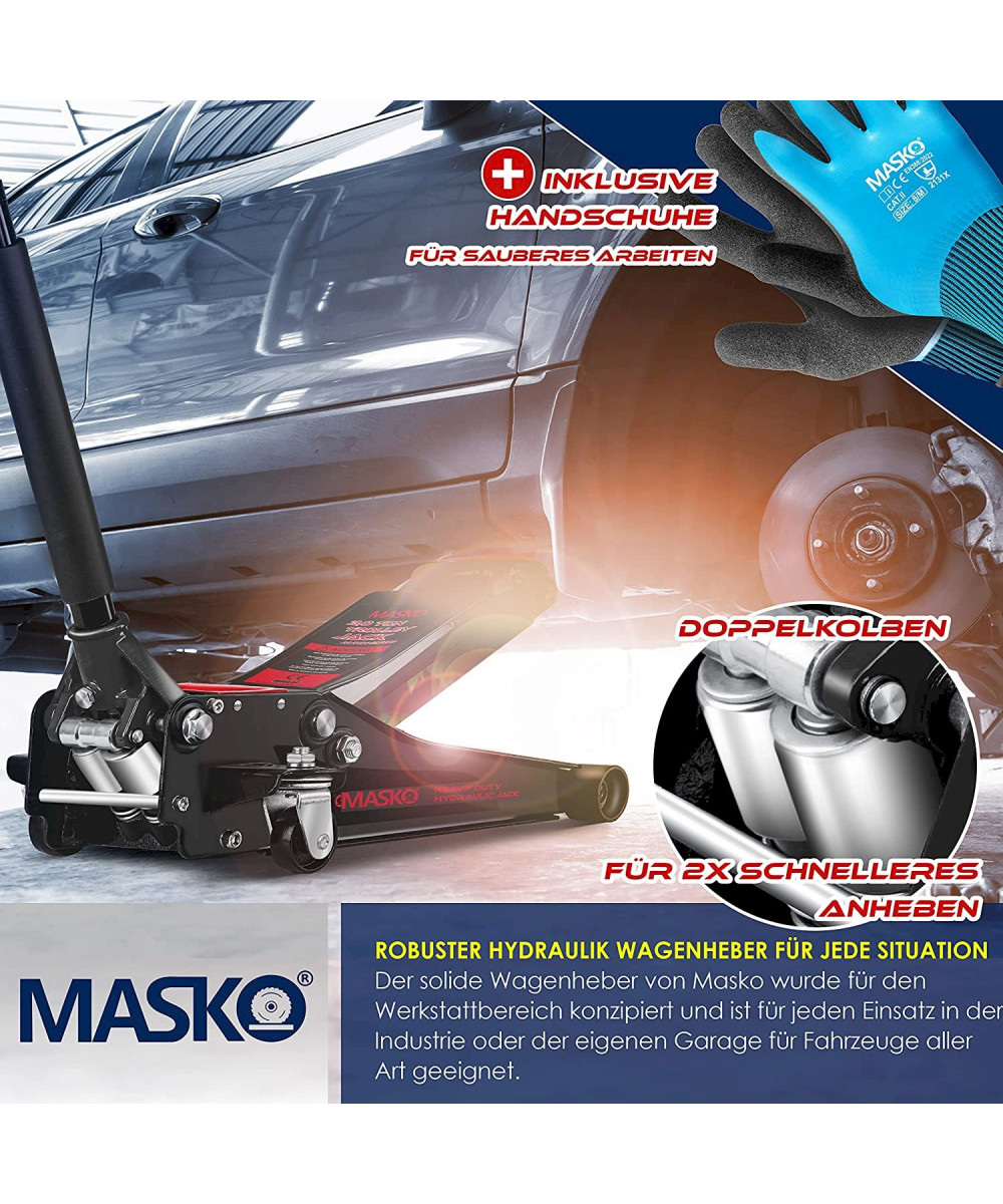 MASKO Wagenheber hydraulisch Flache 3T Schwarz inkl. Koffer KFZ Rangierwagenheber