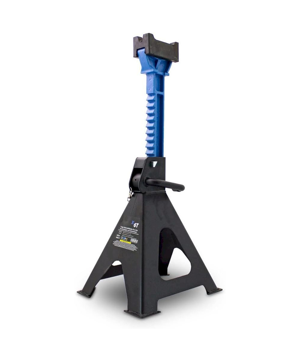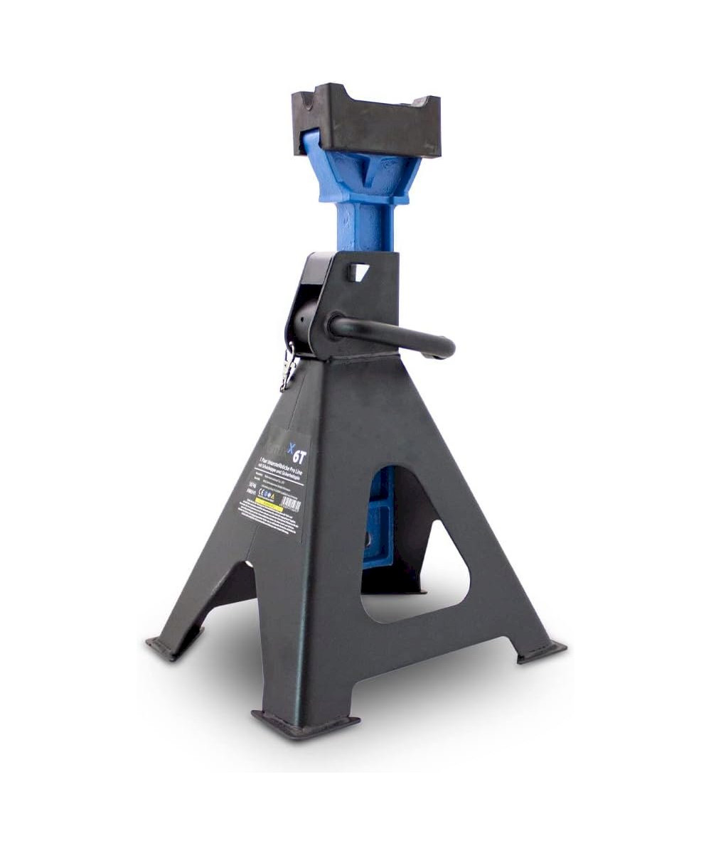 Diese massiven Unterstellböcke tragen Lasten bis 6 Tonnen und können problemlos durch die große Fußauflage auch auf Asphalt eingesetzt werden.