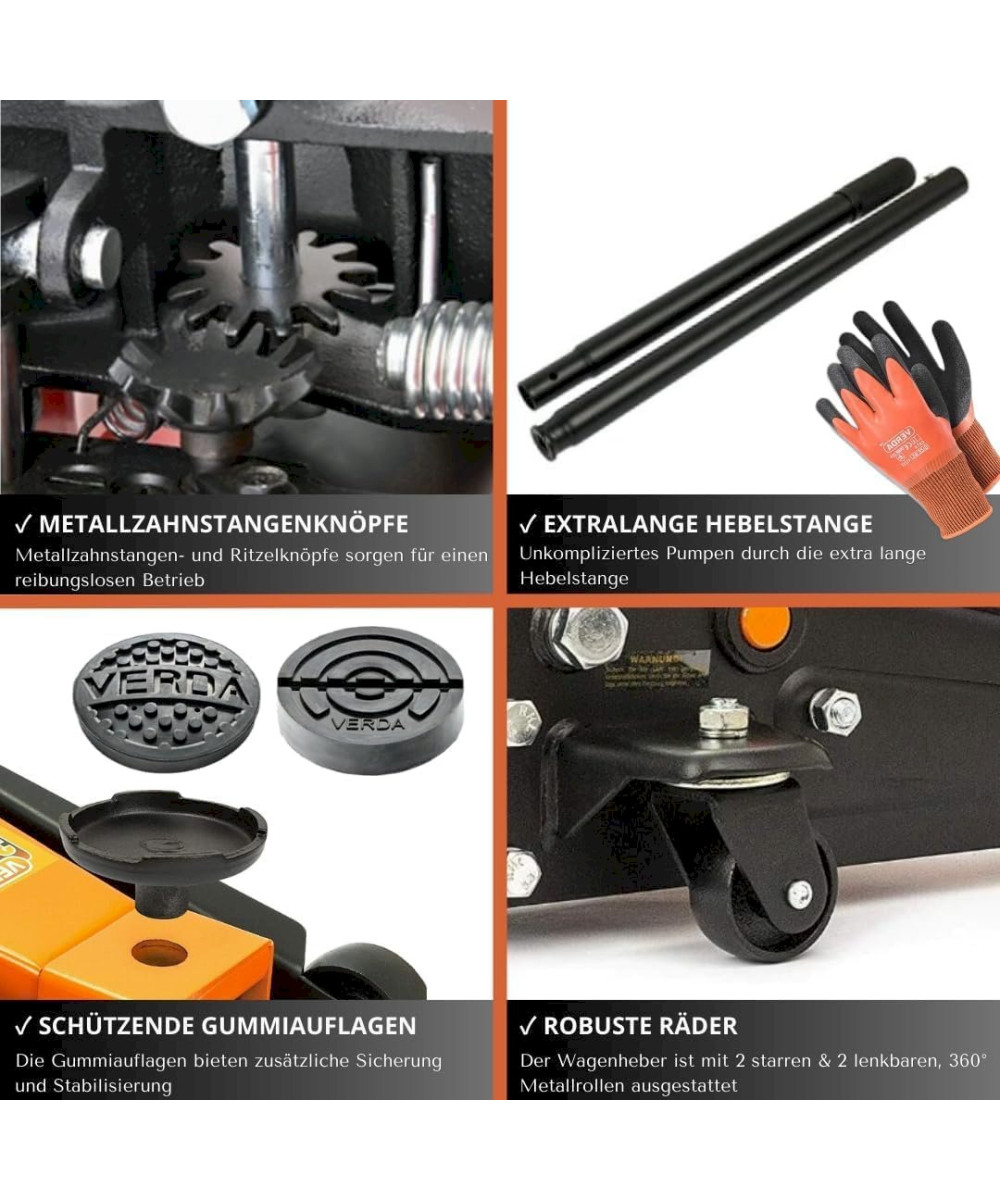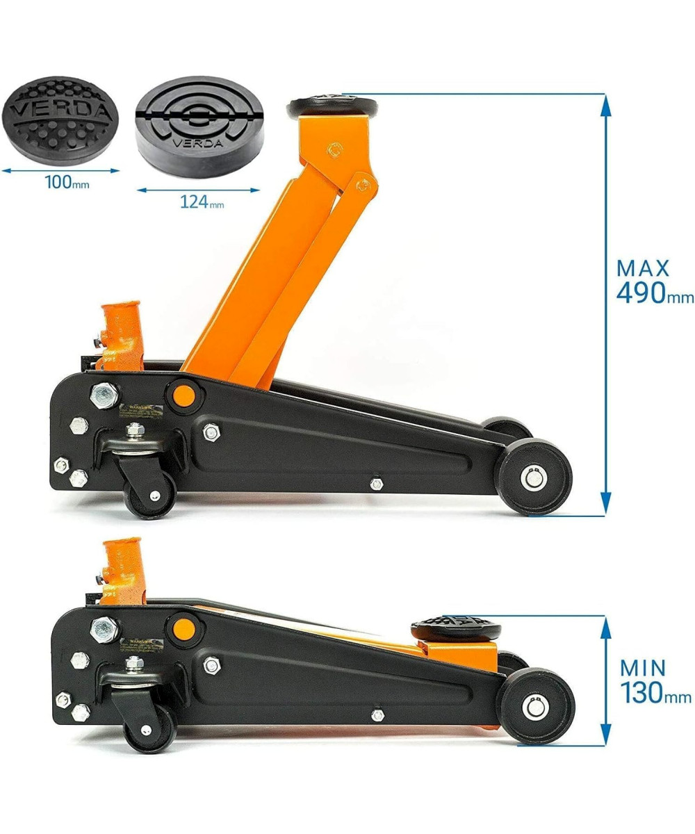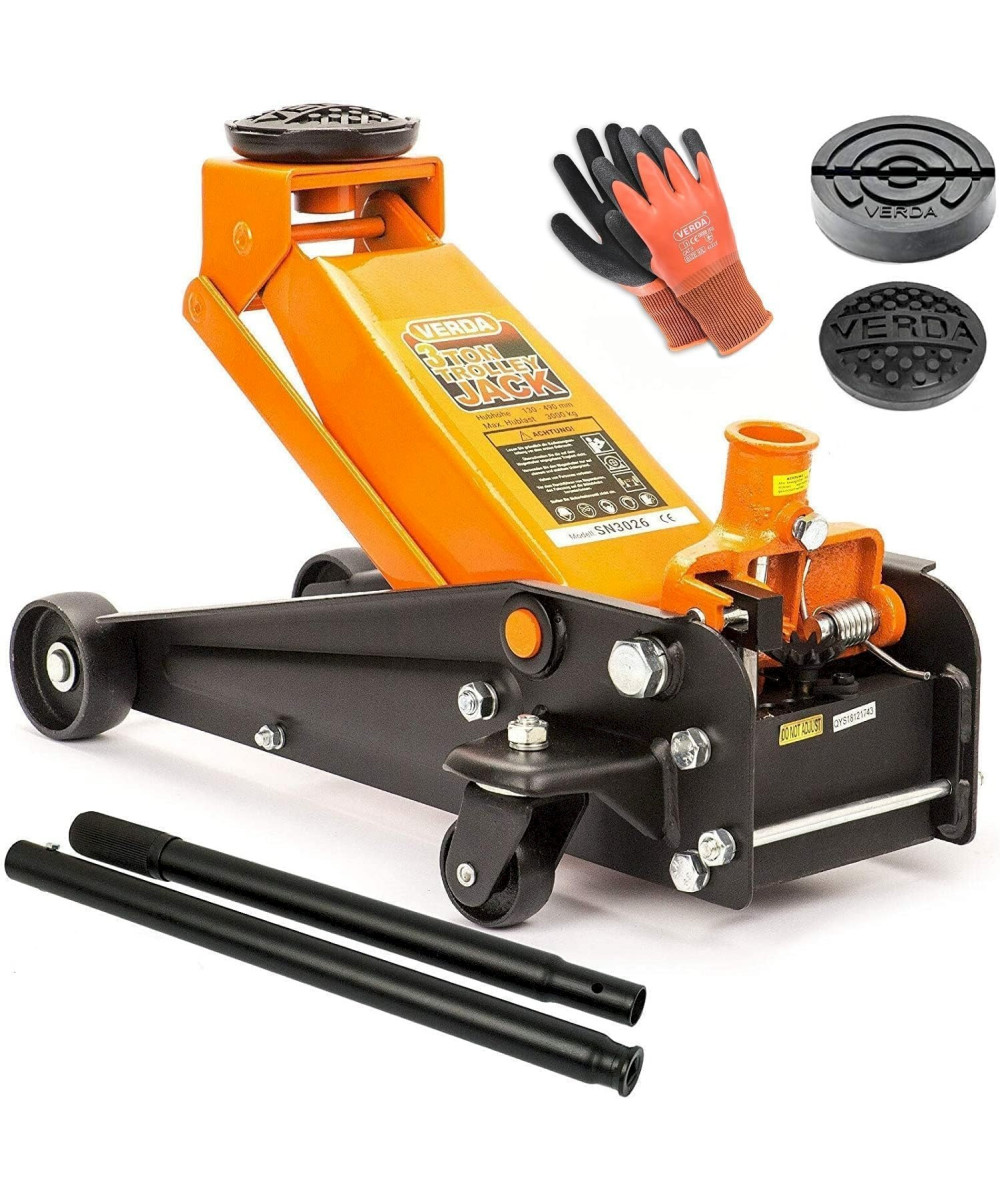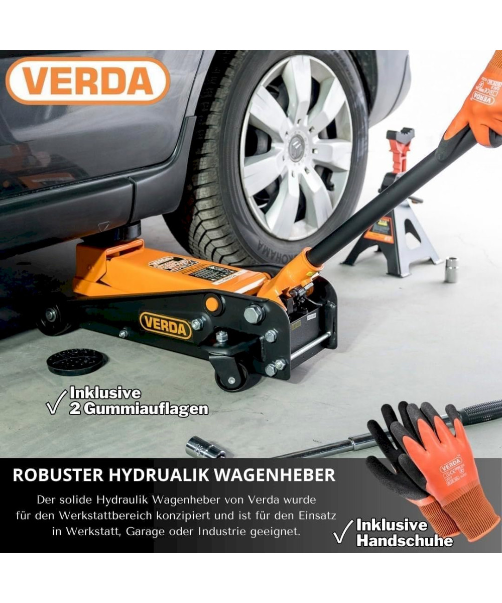 Verda Wagenheber 3t Rangierwagenheber (130-490 mm) SN3026 + 2x Gummi + Handschuhe