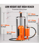 VEVOR Hydraulischer Stempelwagenheber Pneumatischer Wagenheber Druckluft bis 20T 265–500 mm