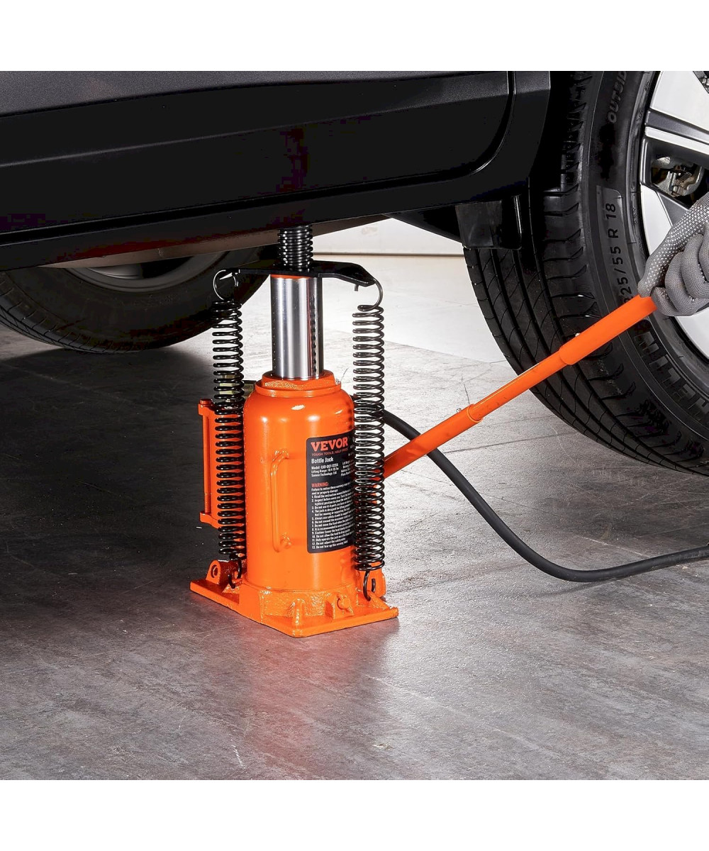 Luft-/hydraulischer Flaschenheber: Dieser professionelle lufthydraulische Flaschenheber kombiniert eine Hubkapazität von 44092 lbs (20 t) und bietet effiziente und arbeitssparende Unterstützung für eine Vielzahl von Hebeaufgaben. Von schweren Maschinen und im Maschinenbau bis hin zu großen Lastkraftwagen bewältigt er mühelos schwere Lasten.