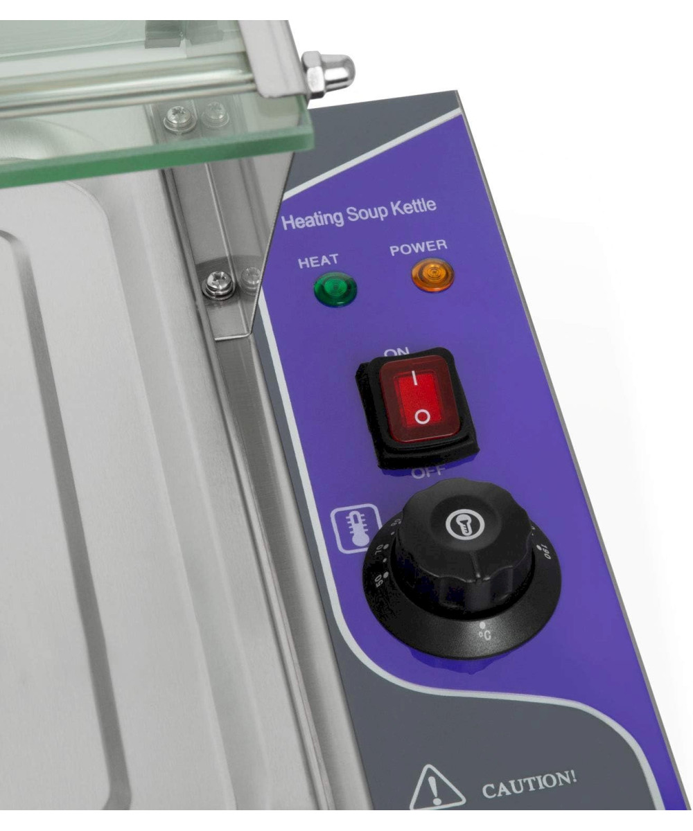 - QUALITÄT: Der elektrische Speisenwärmer von vertes hat eine Temperatur Regulierung bis 200°C, einen Ablasshahn und eine Abdeckung aus Glas. Da unter den Speisen ein Wasserbad erhitzt wird, können die Speisen prinzipbedingt nicht verbrennen