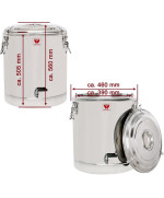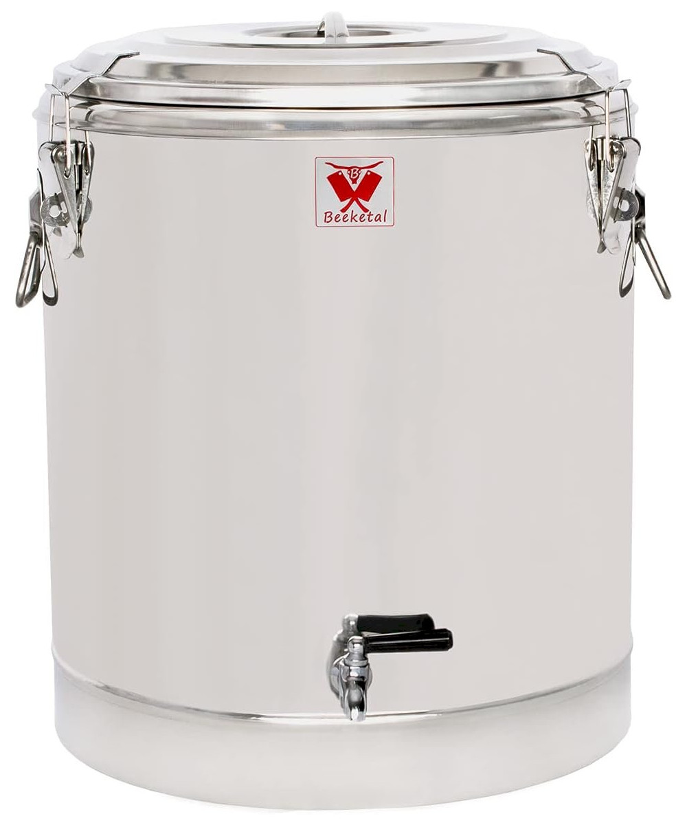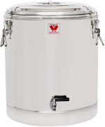 Die Gastro Thermobehälter von Beeketal eignen sich gleichermaßen zum warmhalten oder kalthalten von Speisen oder Getränken. Für eine optimale Isolierung werden die Thermo Behälter aus doppelwandigem Edelstahl gefertigt. Im Deckel ist zudem ein Gummiring eingearbeitet und mit den drei starken Spannverschlüssen wird der Behälter luftdicht, auslaufsicher und somit auch transportsicher verschlossen. Zum transportieren stattet Beeketal die Essensbehälter mit stabilen Metallgriffen an den Seiten aus. Wahlweise können die Behälter mit einem Fassungsvolumen von 11.5, 32 oder 52.5 Litern und mit oder ohne Ablauf-/Zapfhahn bestellt werden.