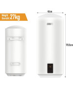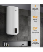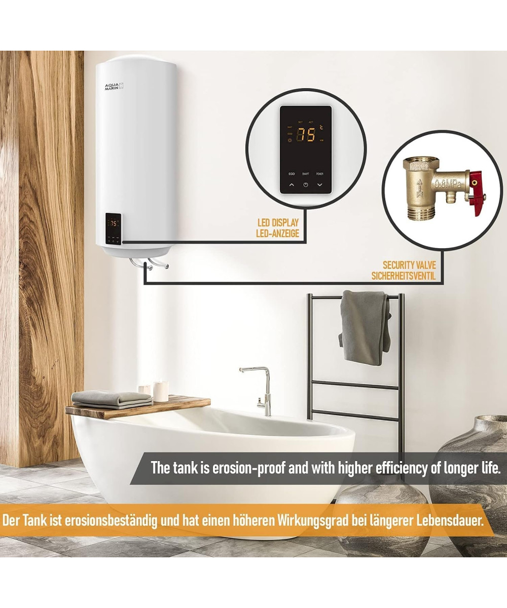 Dieses vielseitige, elektrisch betriebene Haushaltsgerät ist sowohl auf Funktionalität als auch auf Langlebigkeit ausgelegt. Unser Warmwasserspeicher verfügt über einen emaillierten Stahltank mit Anti-Kalk-Beschichtung und Magnesiumanode, um Korrosionsbeständigkeit und eine lange Lebensdauer des Produkts zu gewährleisten. Er ist mit einem einstellbaren Thermostat ausgestattet, mit dem Sie das Wasser auf bis zu 75 °C erhitzen können, sowie mit einem Sicherheitsventil und allen notwendigen Befestigungsmaterialien. Dieses smart Modell ist in verschiedenen Fassungsvermögen erhältlich, so dass Sie ganz sicher eines finden, das Ihren Warmwasserbedarf deckt.