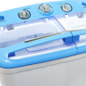 Die Campingwaschmaschine verfügt über eine Pumpe, eine Schleuderfunktion und einen Timer. Das alles ist in einem modernen Design verpackt. Zusätzlich sind mit der Campingwaschmaschine unterschiedliche Waschgänge möglich. Hierzu gehören die Programme Normalwäsche (in 3 Variationen), Feinwäsche und Schleudern. Die Schleuderfunktion weist eine Leistung von 250 Watt auf. Der entsprechende Schleudertimer kann auf eine Programmdauer von bis zu 5 Minuten eingestellt werden und der Waschtimer ermöglicht eine Einstellung von maximal 15 Minuten. Die Temperatur des Waschgangs wird durch das Wasser bestimmt, welches in die Waschmaschine gefüllt wird. Die Maschine selbst erwärmt das Wasser nicht.