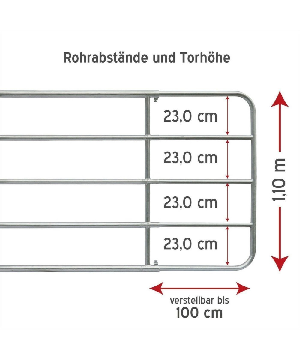 Weidetor Torsystem 2-3m verstellbar - Höhe 110cm Stahl verzinkt + Montageset