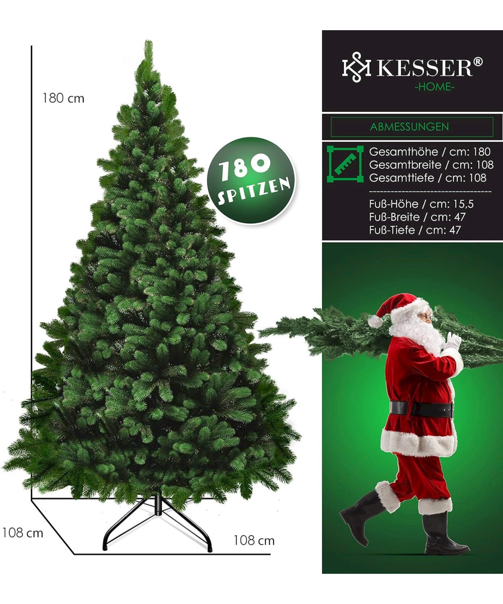 Stellen Sie diesmal einen KESSER Künstlicher Weihnachtsbaum Tanne in Ihr Wohnzimmer Garten und kommen so in den Genuss seines symmetrischen Wuchses und seiner dicht benadelten Äste und Zweigen.
