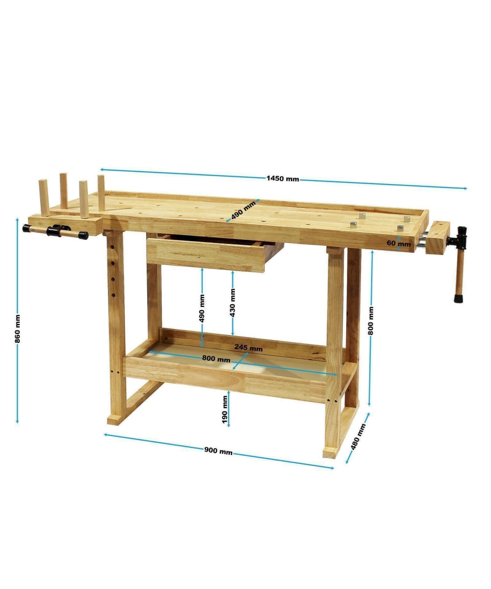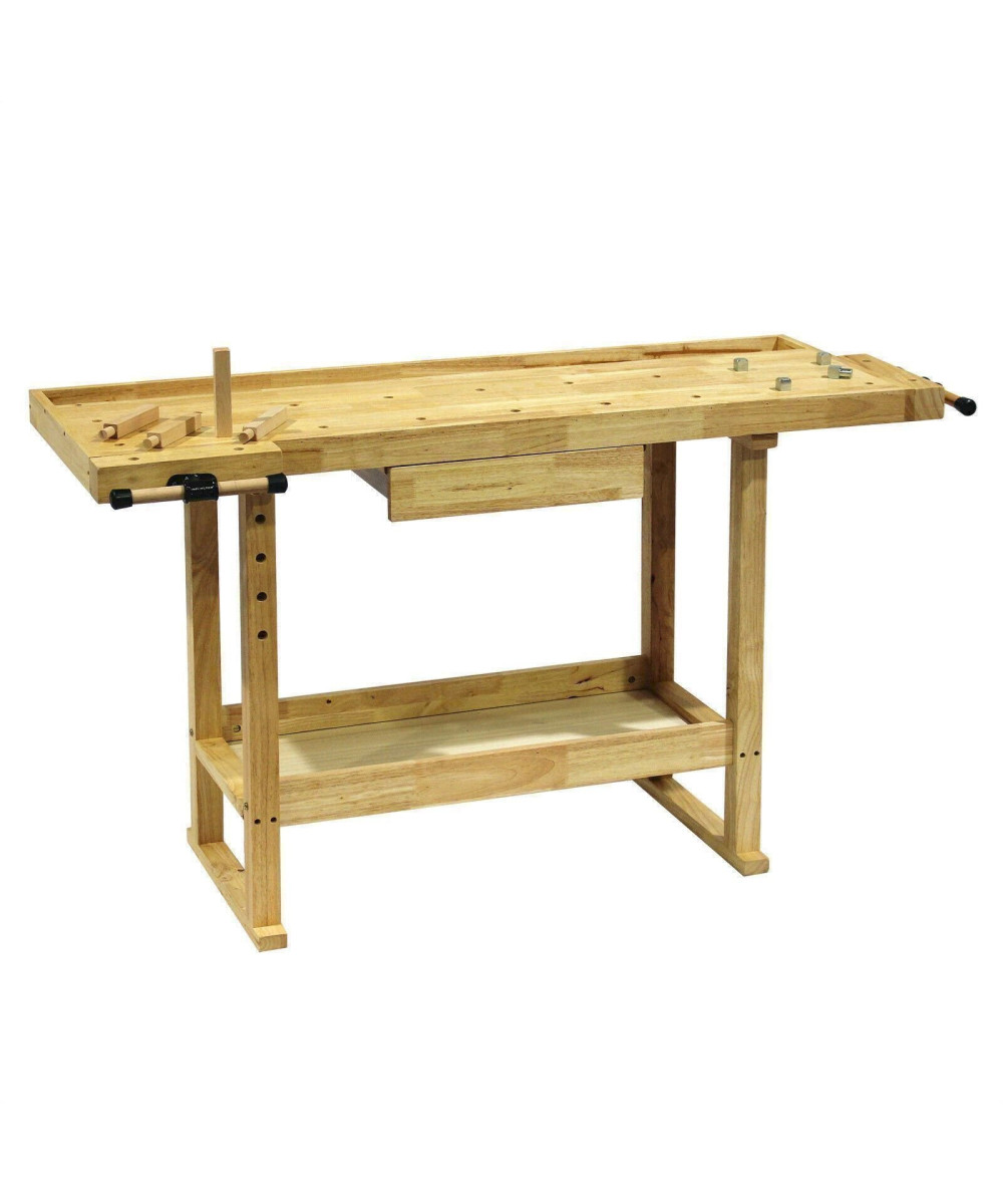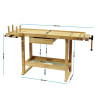 Werkbank 145x49x86cm aus Holz (Rubberwood) mit Ablage und Spannzangen