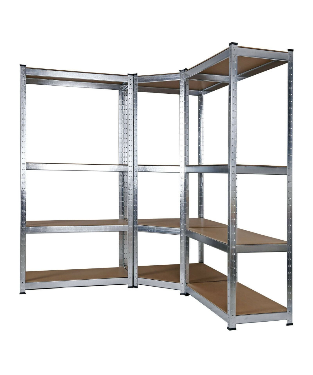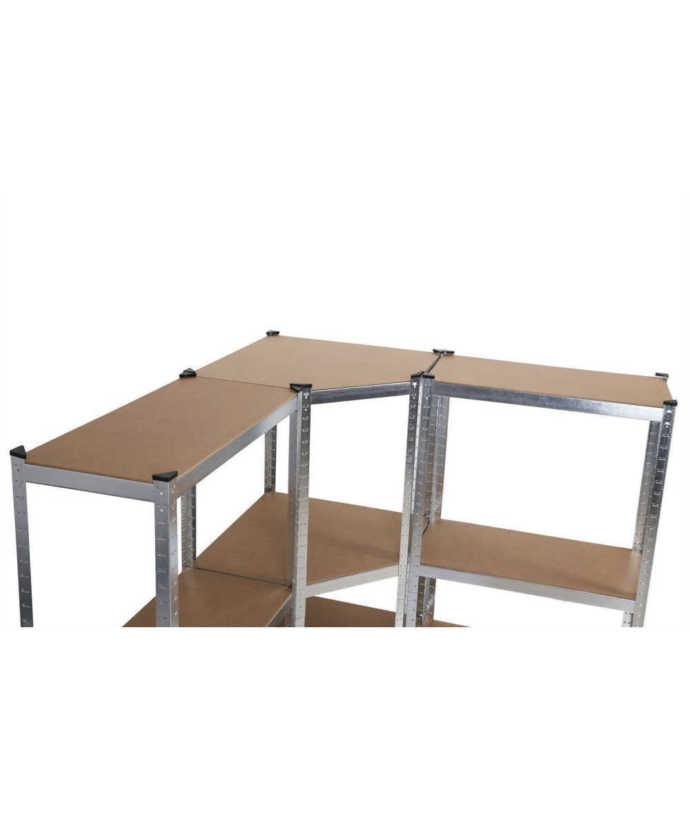 Praktisches Eckregal zur Schaffung von Ordnung und weiterem Stauraum und in der Garage, dem Keller oder Schuppen. Dank der rechtwinkligen Konstruktion passt sich das Regal perfekt in jede Ecke ein und schafft so auf platzsparende Weise maximalen Stauraum.
