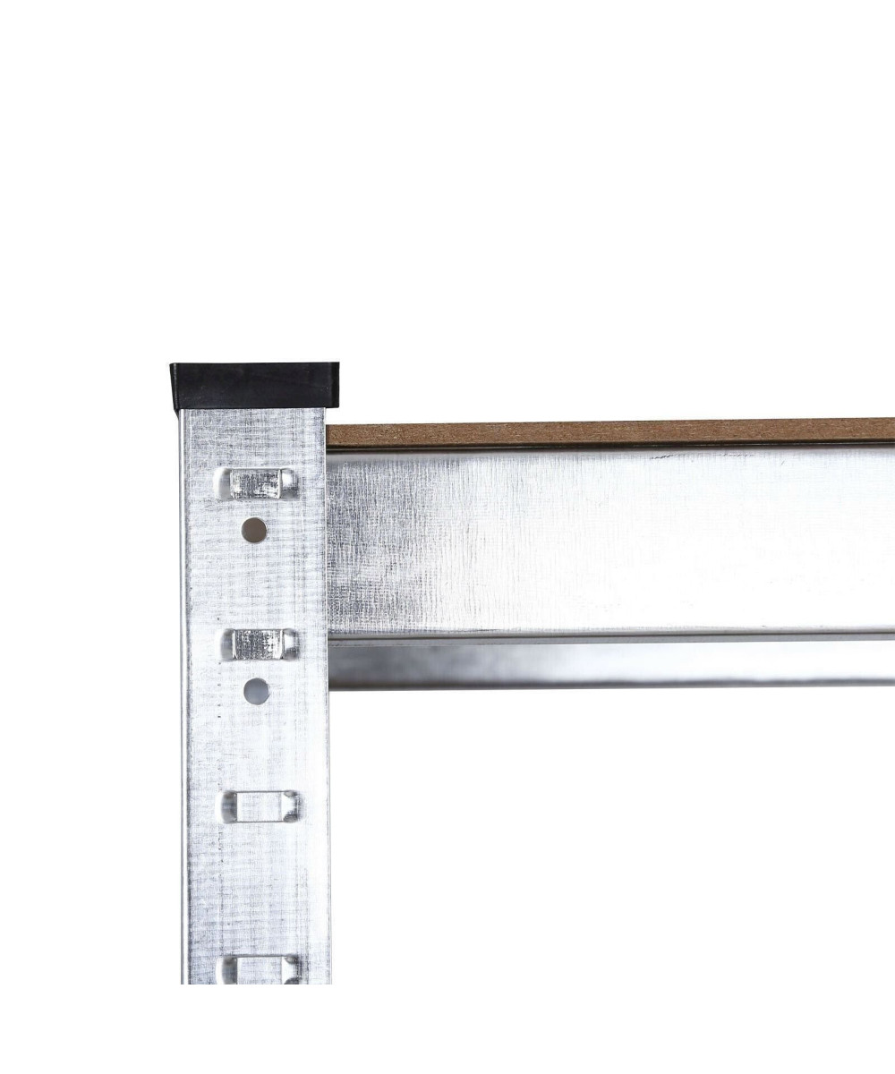Die stabilen MDF-Einlegeplatten sorgen für hohe Belastbarkeit der einzelnen Regalfächer, so dass auch schwerere Gegenstände bedenkenlos eingelagert werden können. So belastbar das Regal ist, so einfach gestaltet sich auch der Aufbau der vollverzinkten Metallkonstruktion: Das intuitive Stecksystem macht den Aufbau denkbar einfach und den Einsatz von weiterem Werkzeug unnötig.