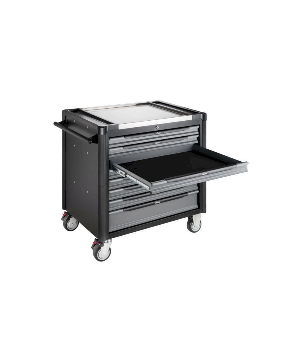- Extratiefer Werkstattwagen mit Edelstahl-Arbeitsplatte, leer