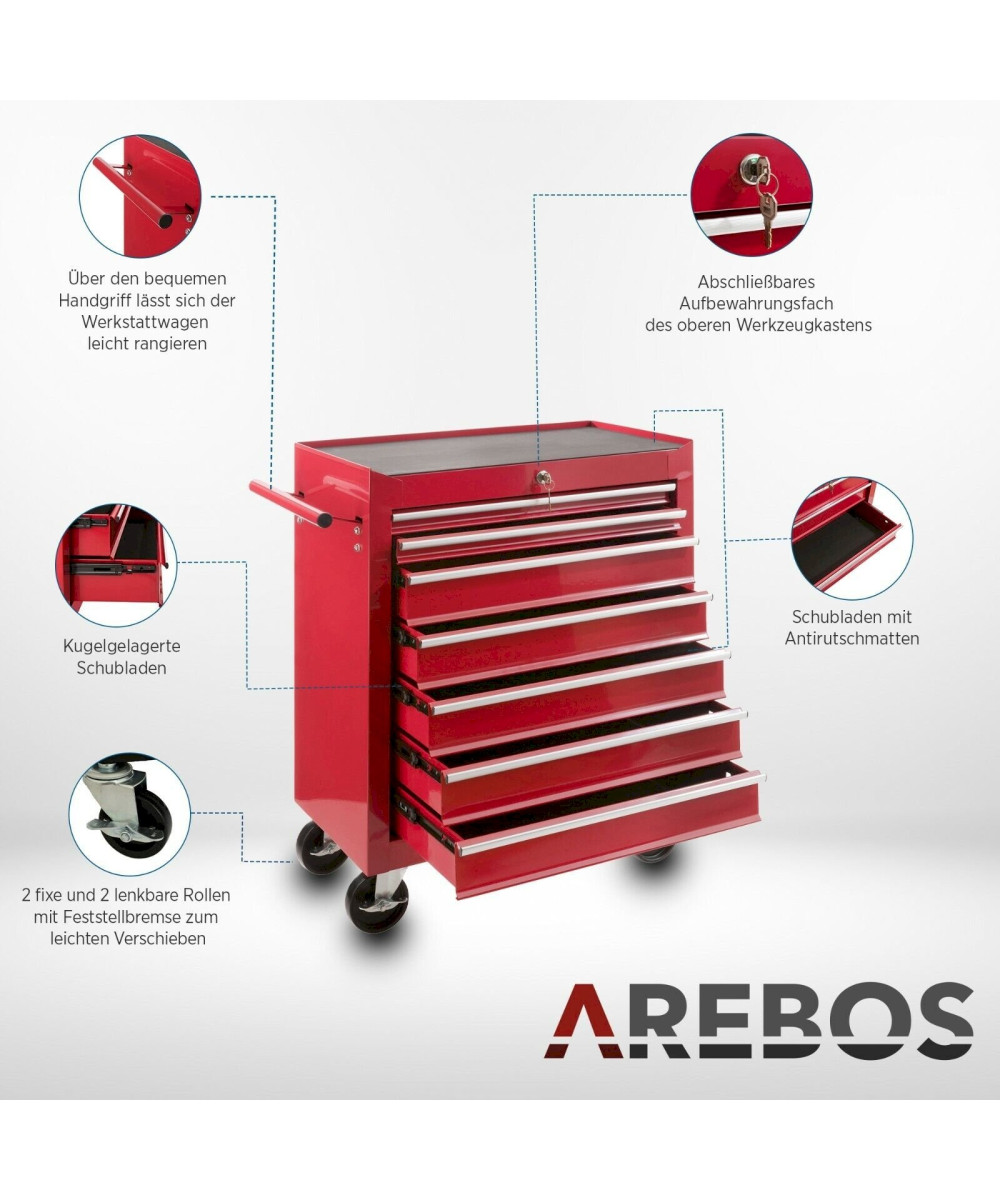Arebos Werkzeugwagen 7 Schubladen abschließbar rot