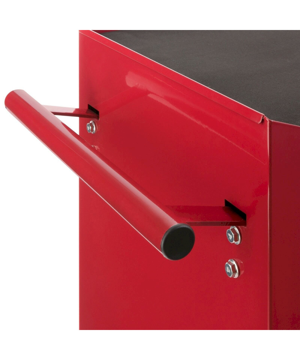 Die Öffnung und Schließung der Schubladen erfolgen dank der kugelgelagerten Schubladen sehr sanft. Außerdem bieten die großen, antirutschbeschichteten Schubladen ausreichend Platz für alle Utensilien und sorgen dafür, dass die einsortierten Werkzeuge immer an seinem Platz bleiben. - Vier drehbare Rollen, zwei Feststellbremsen und ein Schiebegriff