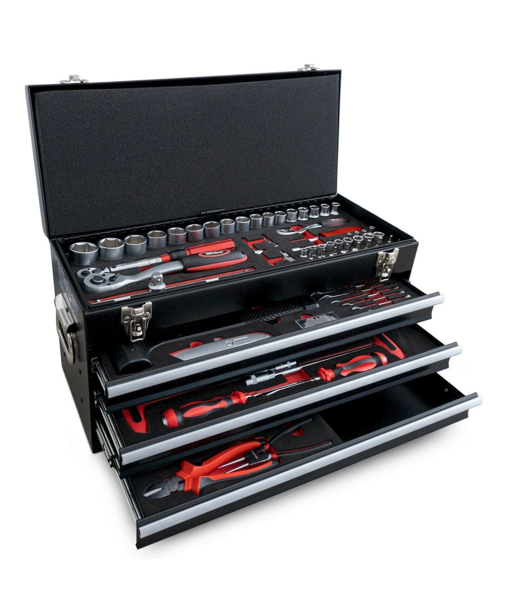 - 1x Werkzeugkiste mit 3 Schubladen und Klappdeckel 104-teilig