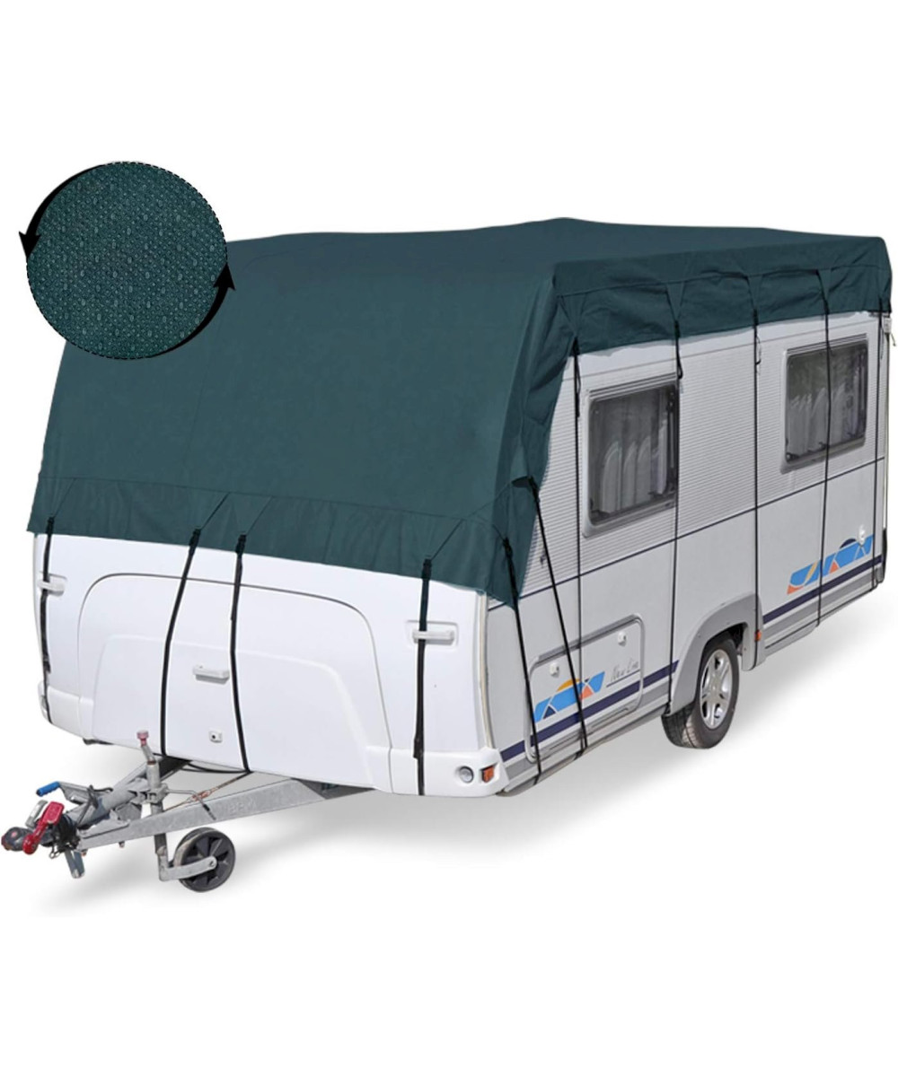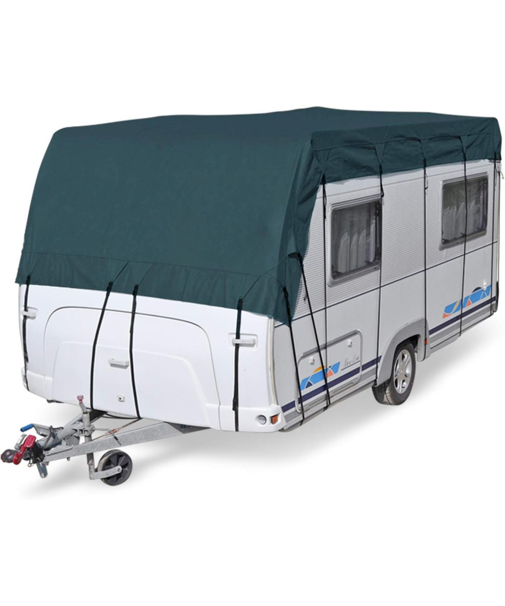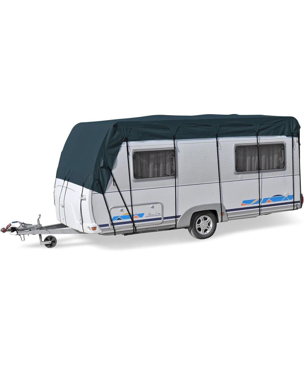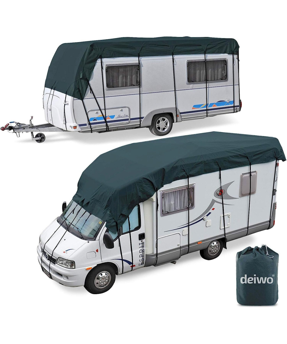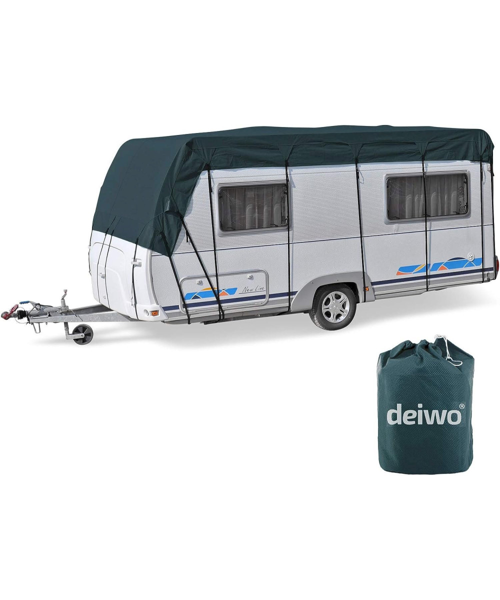 Du suchst nach einem flexiblen Unterstand für deinen Wohnwagen oder dein Wohnmobil? Nimm ihn doch einfach mit! Nicht jeder Camper verfügt gleich über die Möglichkeit eines wintergeschützten Standplatzes für sein Reisegefährt. Hier schafft eine Abdeckung Abhilfe. Eine, die dazu einfach und in der Handhabung ist und edel aussieht. Gerade in der kalten Jahreszeit richten Frost, Eis und Wind ungewollte Schäden an Wohnwagen oder Wohnmobil an – wie ärgerlich! Angesammelter Schmutz in Kombination mit Schmelzwasser ergeben irgendwann einen unliebsamen Schmierfilm, der sich in Leisten und den kleinsten Ritzen festsetzt. Um diesen wieder zu entfernen, braucht es dann Zeit und Muße, die du dir sparen kannst! Die deiwo® Wohnwagen Schutzdach-Plane mit SFS 4 - Schicht-System, beugt diesen Einwirkungen von außen entschlossen vor und streicht unliebsames Putzen von deiner to-do Liste.