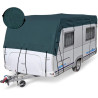 Die Schutzhüllen wurden speziell für den Einsatz an Freizeitfahrzeuge entwickelt und sind universal passend für viele Wohnwagen und Wohnmobile. Die Basis der Schutzhüllen bildet das 4-Schicht-System SFS Material. Eine besondere Eigenschaft des SFS - “Non-Woven” - Vlies ist die glatte Oberfläche. Diese unterstützt ein verbessertes Ablaufen von Regenwasser. Durch die kaschierte Innenseite liegt die Abdeckung weich auf und schützt die Außenhaut des Caravans vor äußeren Einflüssen. Das Material ist aufgrund dieser Eigenschaften besonders wertig, schön weich und dennoch überaus stabil und vor allem atmungsaktiv. Durch Vertiefungen im Obermaterial entsteht ein Porengeflecht, welches enorm strapazierfähig ist und zu einer idealen Luftzirkulation beiträgt. Nach einer gewissen Nutzungsdauer nimmt das Material eine “Memory”- Funktion an und schmiegt sich passgenau an.