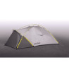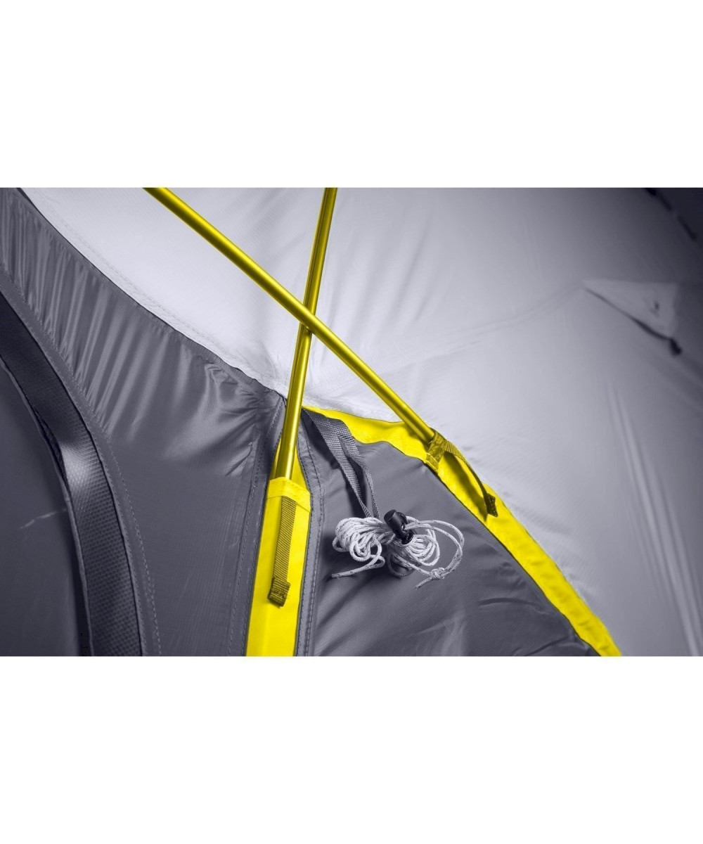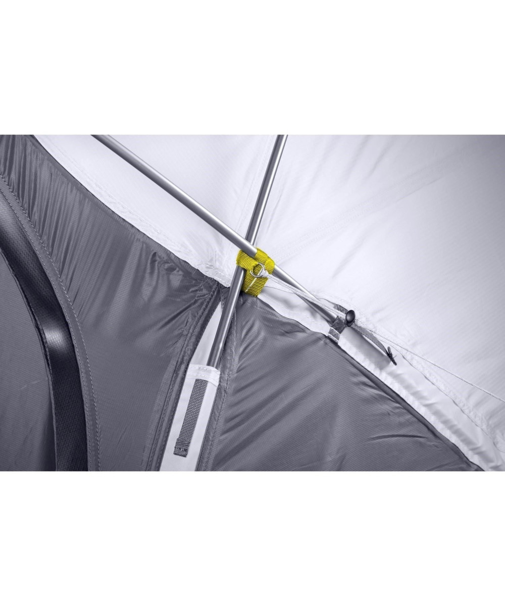 Die robuste und verlässliche Semi-Geodät Doppelwandkonstruktion bietet die optimale Balance zwischen Wetterschutz und Gewicht. Zudem schränkt sie räumlich nicht ein. Dank des 100 % selbsttragende Designs lässt sich das Zelt problemlos im felsigen Gelände ohne Möglichkeiten zur Abspannung aufbauen. Die Apside wird dabei bereits mit dem Gestänge und nicht erst mit den Heringen gespannt. Für mehr Flexibilität können auch die Ankerpunkte verlängert werden. Das reißfeste 20D Ripstop Nylon Außenzelt ist Silikon- und PU-beschichtet und erreicht so eine 3.000 mm Wassersäule, der Boden ist aus robustem 40D Nylon Ripstop mit PU Beschichtung und 10.000 mm Wassersäule gefertigt. Das Innenzelt aus 20D Nylon Ripstop verfügt über einen Eingang aus Mesh-Material mit integriertem Mückennetz. Für eine bessere Ventilation lässt sich das Rückpanel von innen und außen mit Reißverschlüssen öffnen, so die Frischluftzufuhr regulieren und Feuchtigkeit im Inneren vermeiden.