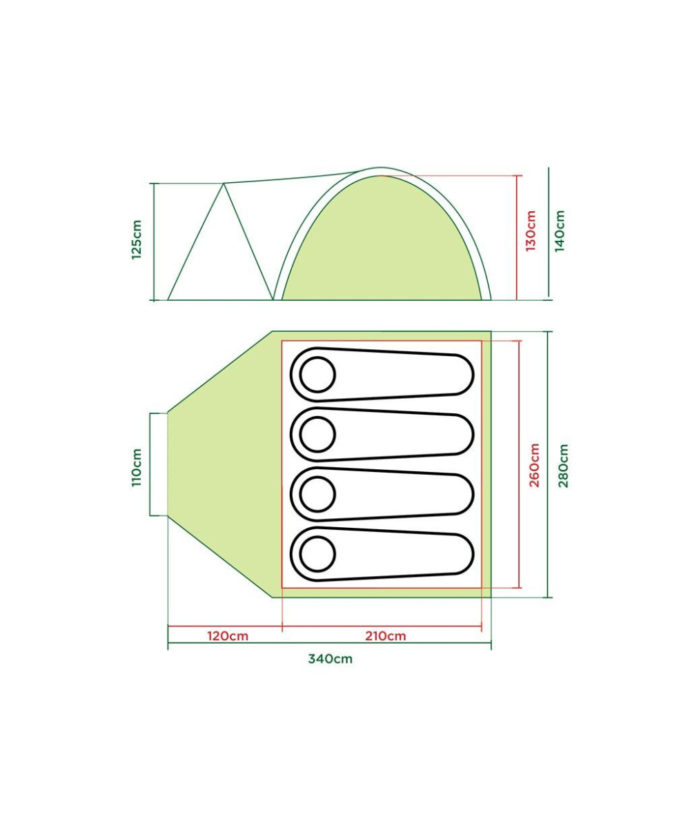 Das Zelt Darwin 4 Plus ist ein schnell aufgebautes Kuppelzelt, das im Frontbereich noch einen Tunnelbogen für einen großen Staubereich integriert hat. Es ist das perfekte Zelt für Festivals, Kurz- oder Wochenendtrips. Besonderen Komfort erhält das Zelt durch den wasserdichten Boden sowie die großen Fenster im Eingangsbereich, das auch bei schlechtem Wetter ausreichend Licht einlässt.