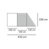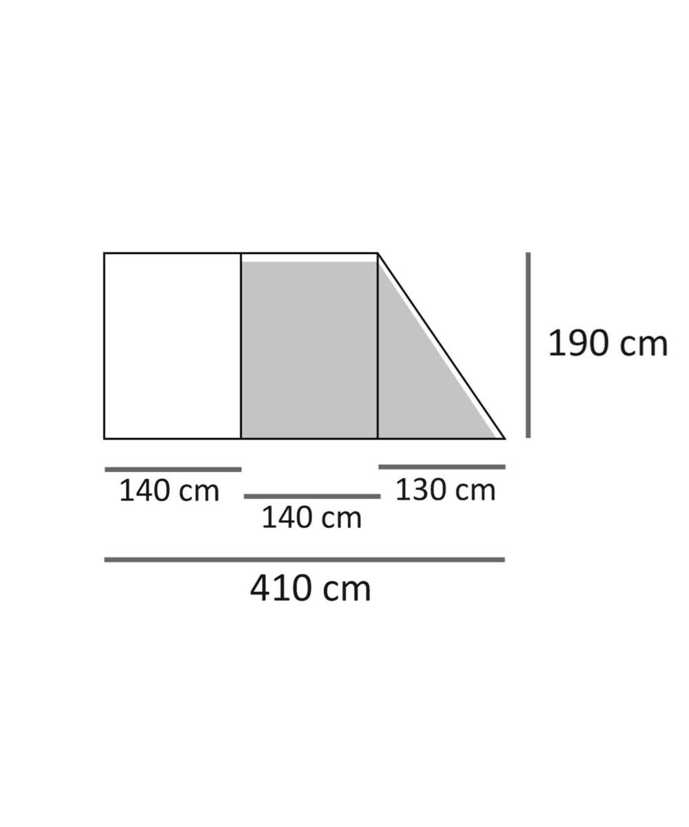 - Außenmaß: ca. (L) 410 cm x (B) 250 cm x (H) 190 cm