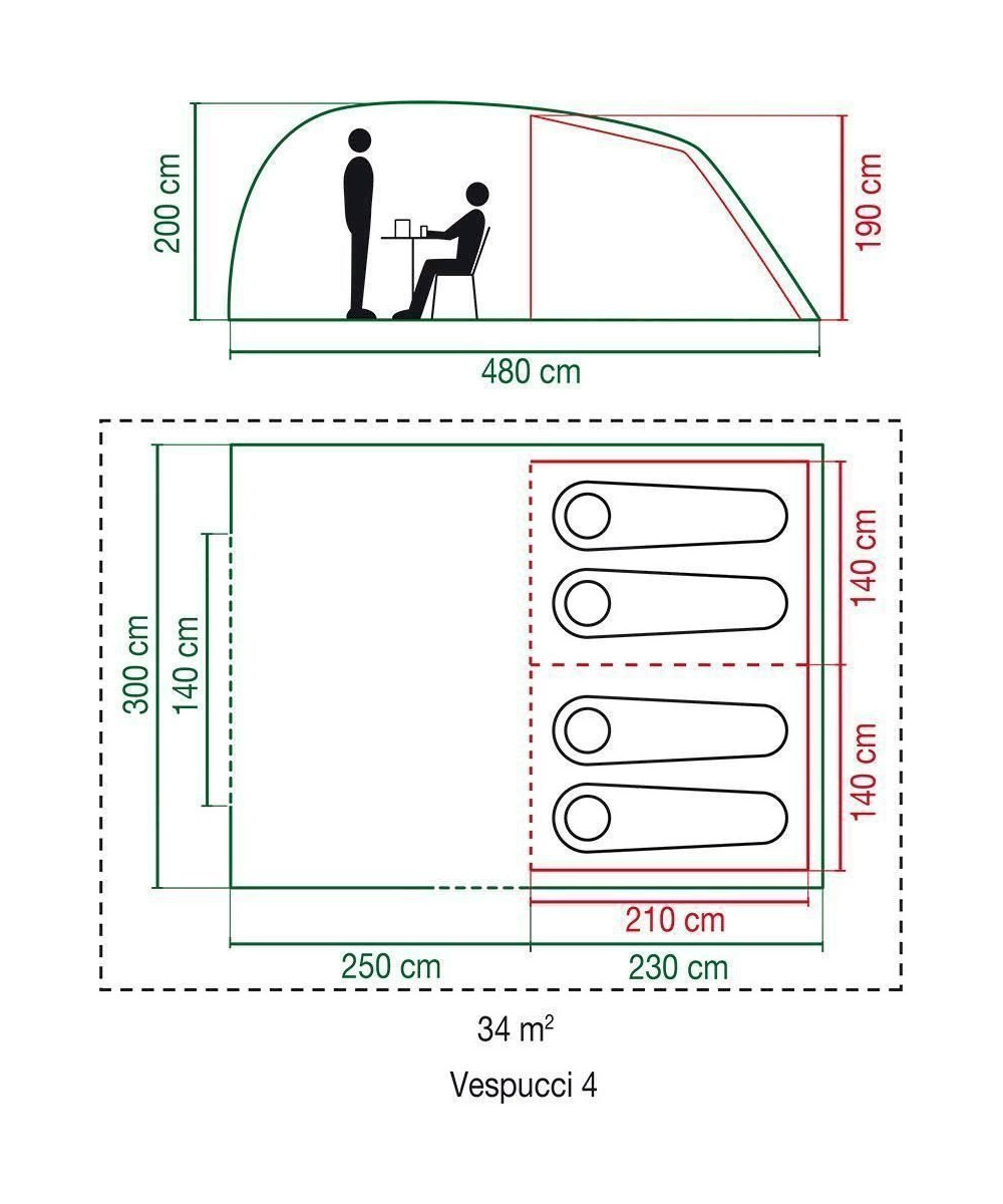 - Innenmaß: 2 x (210 x 140 cm) und (250 x 300 cm), Höhe 190/200 cm