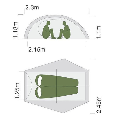 | Abmessungen | Innenzelt: max. 215 x 125 x 110 cm | Außenzelt: max. 230 x 245 x 118 cm |