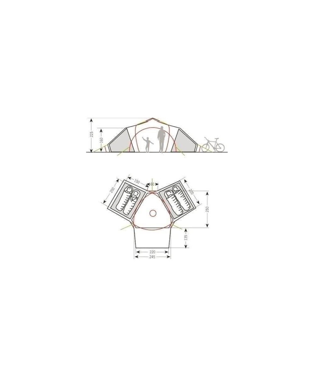 - Außenzelt: 100% Polyester (75D 185T Polyurethan coated)