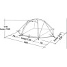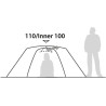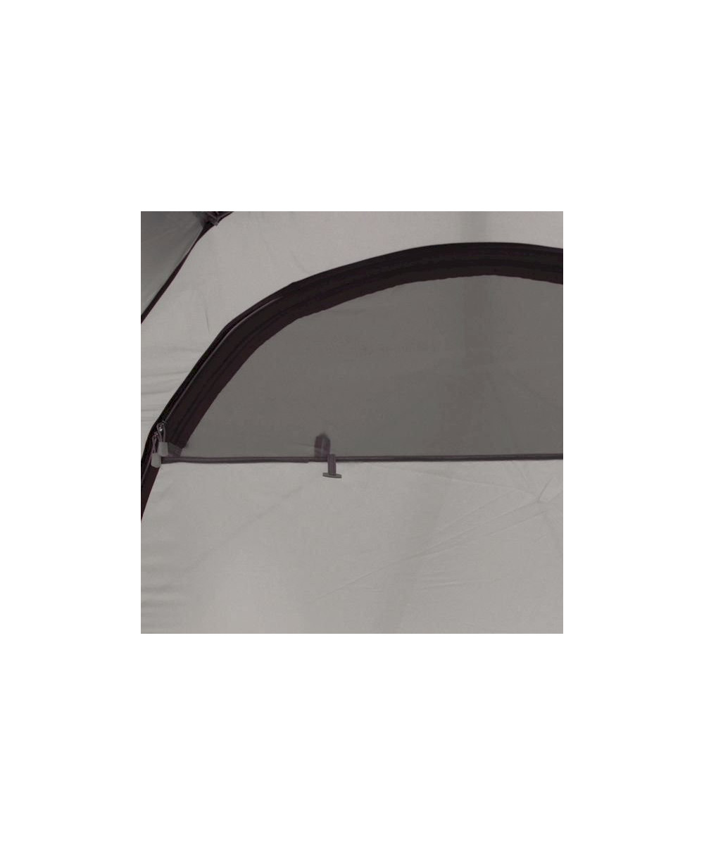 Die Kombination aus Kuppelkonstruktion und kurzer, querlaufender Firststange bietet flexibel nutzbaren Wohn-, Koch- und Stauraum. Dank der besonders großen Höhe und Breite im Inneren können die beiden Bewohner nebeneinander sitzen. Die zwei Eingänge bieten beiden Campern bequemen Zugang sowie diverse Möglichkeiten zum Öffnen der Eingänge, die einerseits Schutz vor Wind bieten und andererseits für Durchlüftung sorgen. Die fest verankerten Stangenenden und die Doppelösen im robusten Gewebe geben dem Innengestänge sicheren Halt an der Firststange.