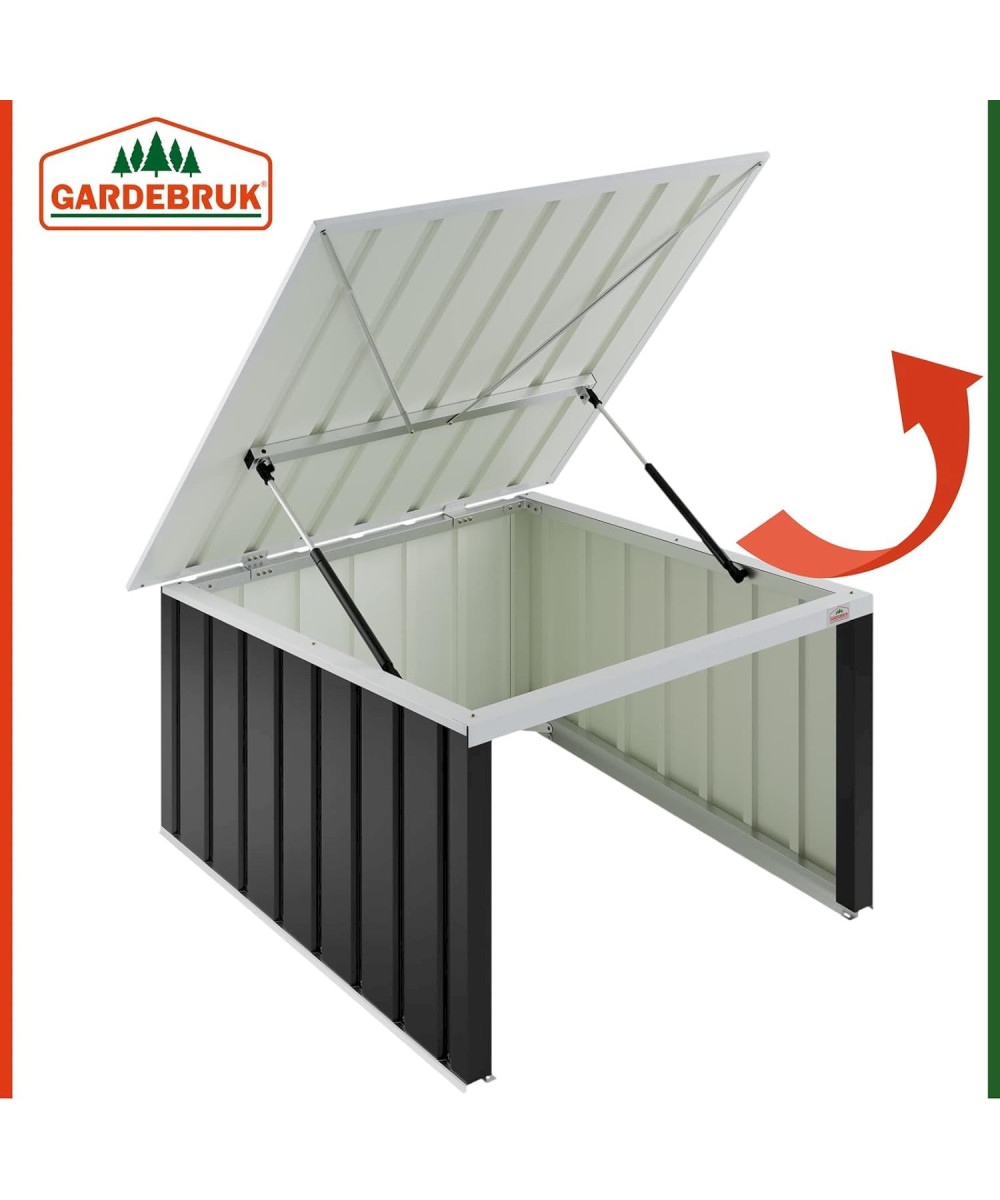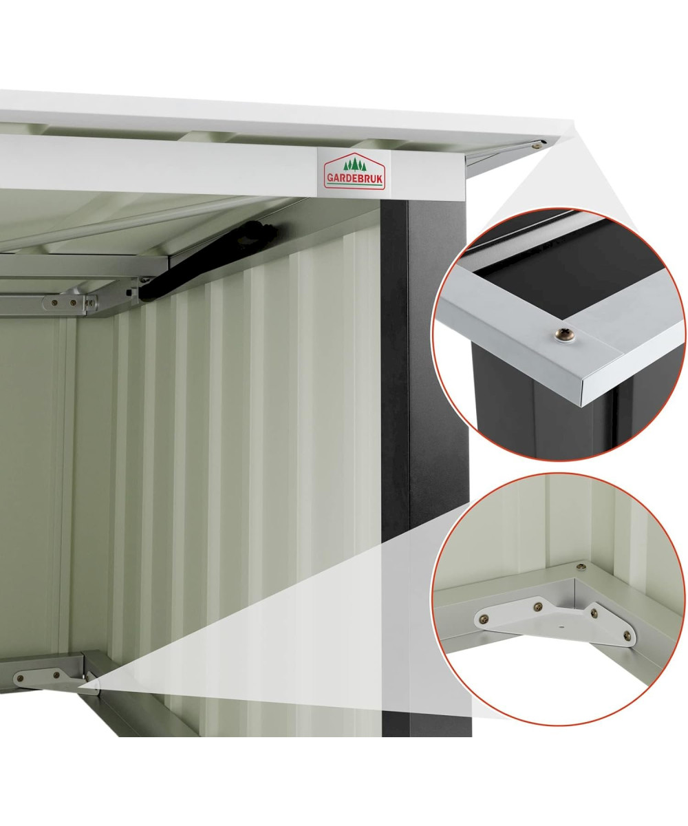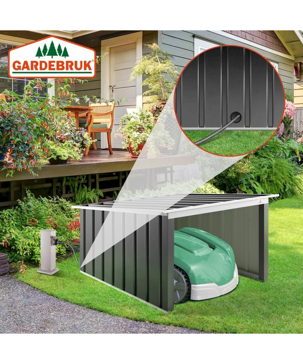 Die edle Mähroboter Garage mit Satteldach von Gardebruk® ist der perfekte Unterstand für ihren Mähroboter. Die Garage ist durch ihr hochwertiges Material aus feuerverzinktem Stahlblech und verzinktem Stahlrahmen mit UV-geschützter Lackierung ein langlebiges Zuhause für ihren fahrenden Rasenmäher.