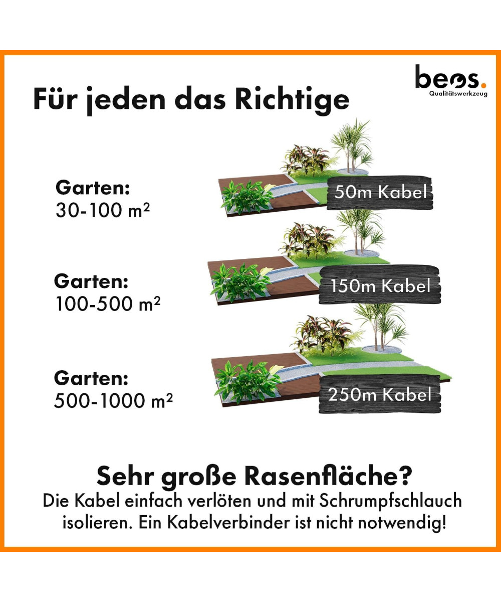 BEOS PREMIUM Begrenzungskabel für Mähroboter 150m Ø2.7mm Kompatibel mit Rasenroboter von Worx, Gardena, Husqvarna, Bosch,