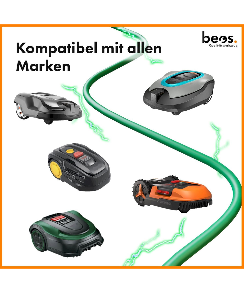 Unser Qualitätskabel auf einer praktischen Abrollhilfe ist kompatibel mit allen gängigen Markenherstellern. wie Husquarna Automower, Worx Landroid uvm.